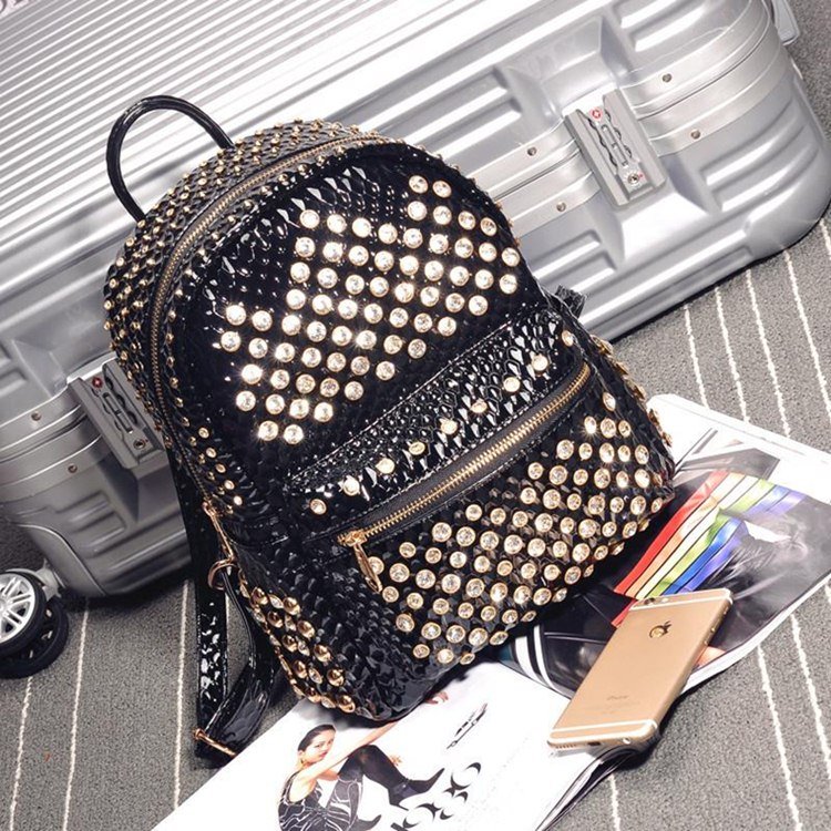 kristal taşlı zımbalı bayan siyah sırt çantası sk10280