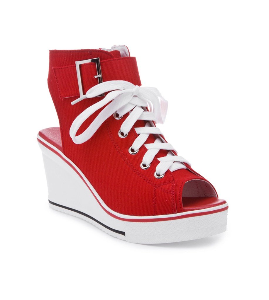 dolgu topuklu converse tarzı kırmızı sandalet sk10673