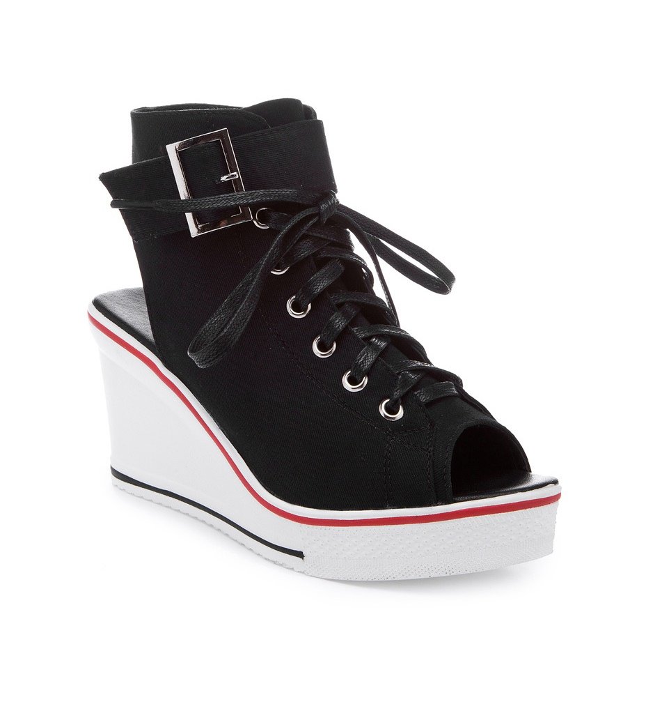 dolgu topuklu converse tarzı siyah sandalet sk10673