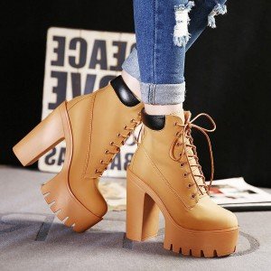 Bağcıklı Kalın Topuklu Bootie SK312