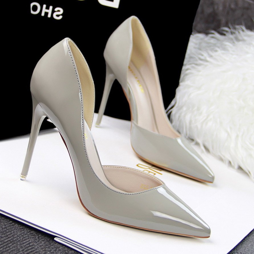gri renk sivri burun rugan stiletto sk4809