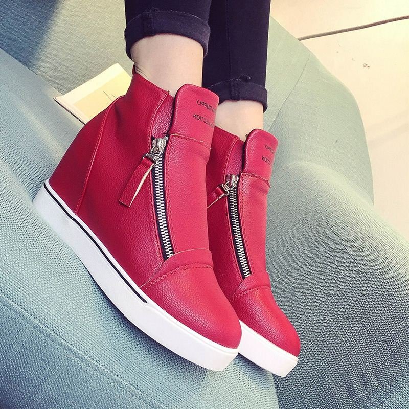 kırmızı gizli topuk çift fermuarlı sneaker sk5708