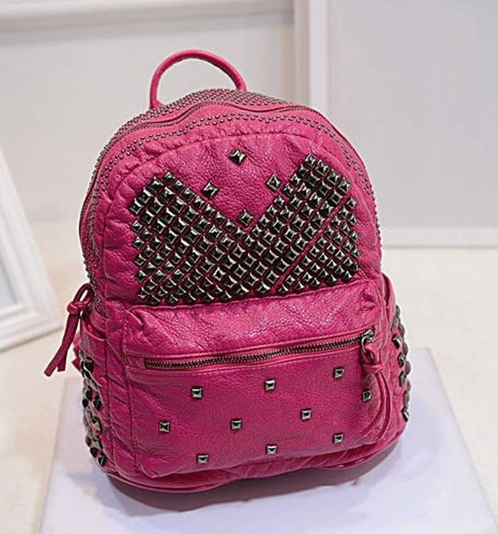 pembe zımbalı deri sırt çantası sk7050