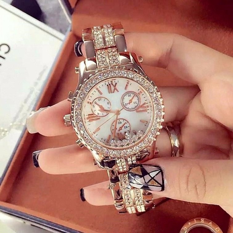 kristal lüks taşlı bej kol saati sk7987