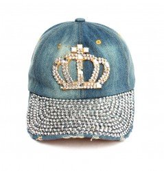 zımbalı taşlı mavi kraliçe kot şapka sk8057