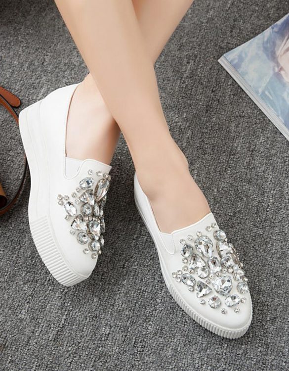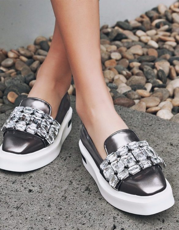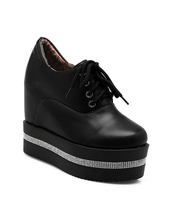 Platform yüksekliği 4 cm'dir. Ayakkabının burun kısmında kristal taş detaylar kullanılmıştır. Ayakkabının kapama şekli bağcık olarak tasarlanmıştır. Siyah ve Beyaz rengi mevcuttur. 34-42 beden seçenekleri arasında sipariş verebilirsiniz.