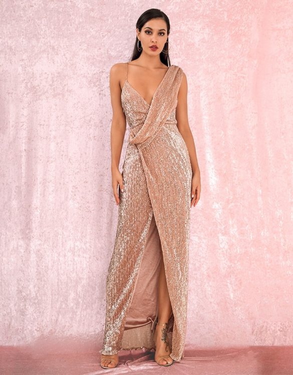 Taş İşlemeli Askılı Uzun Elbise SK49978