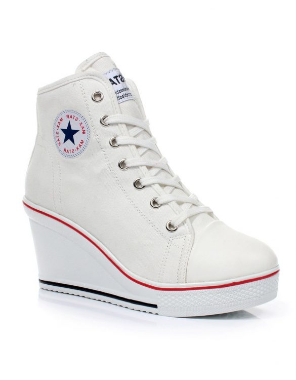 Yüksek kalite suni deriden üretilmiştir. Taban malzemesi kauçuktur. Kalın yüksek platform tabanlıdır. Topuk yüksekliği 12 cm'dir. Spor ayakkabı gizli topuk detaylıdır. Ayakkabının kapama şekli Bağcıklı olarak tasarlanmıştır. Beyaz ve Gümüş rengi bulunmaktadır. 35-39 numara seçenekleri arasında sipariş verebilirsiniz.