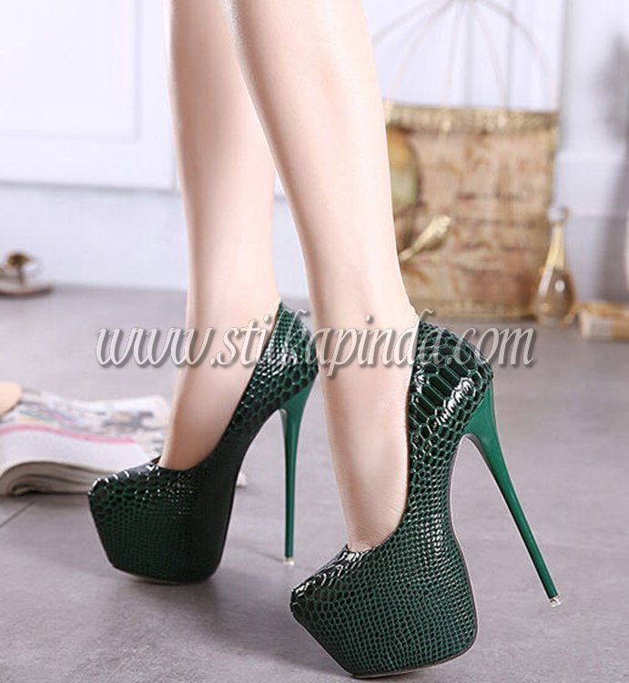 yeşil timsah derisi yüksek topuk platform ayakkabı