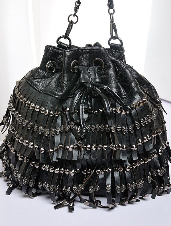 Büzgülü Püsküllü Punk Çanta SK12621