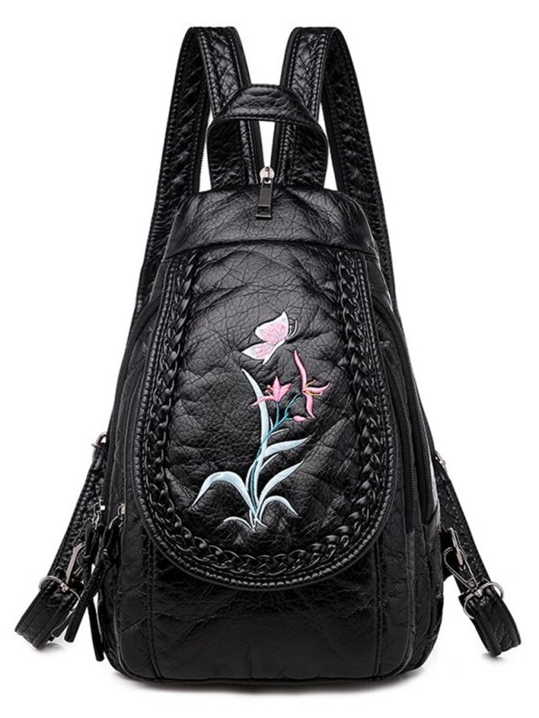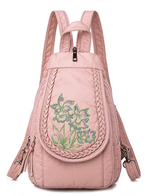 Nakış Detaylı Yumuşak Deri Sırt Çantası
