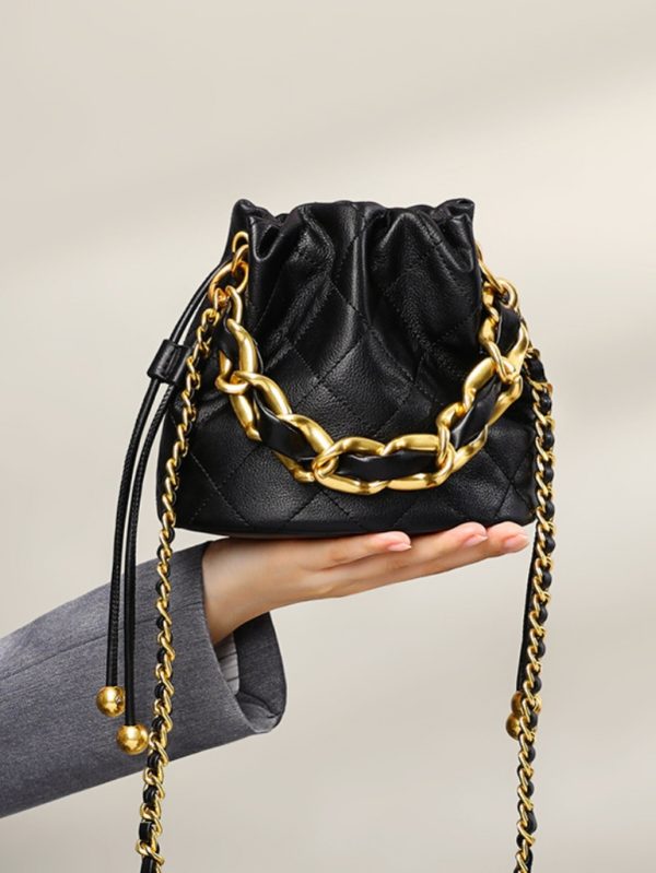 Siyah Gerçek Deri Zincirli Omuz Çantası