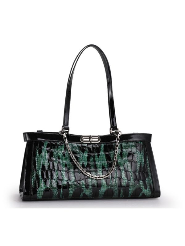 Timsah Derisi Desenli Hakiki Deri Çanta