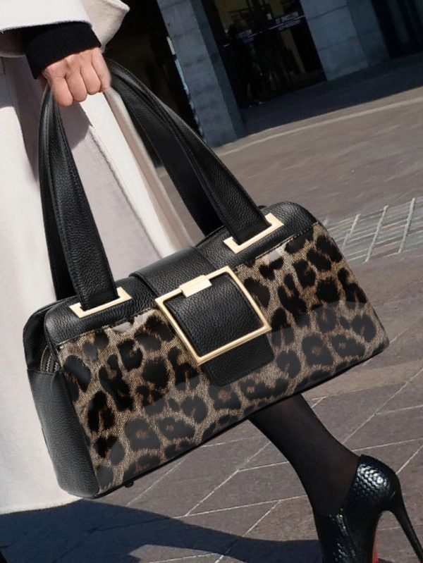 Yüksek kalite gerçek dana derisinden üretilmiştir. Çanta 31x16,14 cm ebatındadır. Çanta orta boy olup omuz ve kol çantası olarak tasarlanmıştır. Çanta leopar desen ve toka detaylara sahiptir. Siyah renk seçeneği ile sipariş verebilirsiniz.