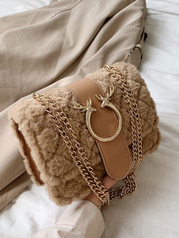 Yumuşak Kürklü Tasarım Zincir Saplı Çanta