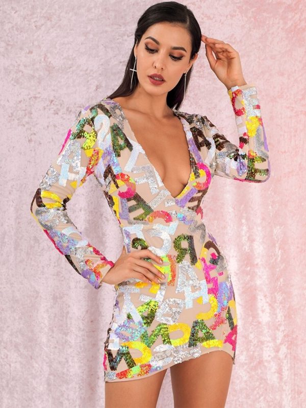 Payetli Tasarım Gece Elbisesi. Davet ve organizasyonlarda şık bir görünüm elde edebileceğiniz, polyester ve pamuk karışımı kumaştan üretilmiş, Uzun kollu, payet desen detaylı olarak tasarlanmış, kapama şekli fermuarlı olarak kullanılmış, size şıklık katacak tasarıma sahip, belden oturtmalı kesim, göğüs dekolteli mini tasarım elbise. Çok renkli renk seçenekleri ile XS,S,M ve L beden olarak sipariş verebilirsiniz.