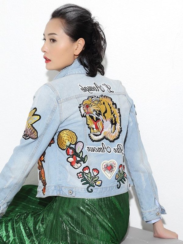 %100 Pamuk kumaştan üretilmiş, slim fit kesime sahip, metal düğme kapamalı, ön kısımda iki cep, kaplan,kelebek ve çiçek nakış detaylı kısa kot ceket. Buz mavisi rengi mevcuttur. S,M ve L beden seçenekleri ile sipariş verebilirsiniz.