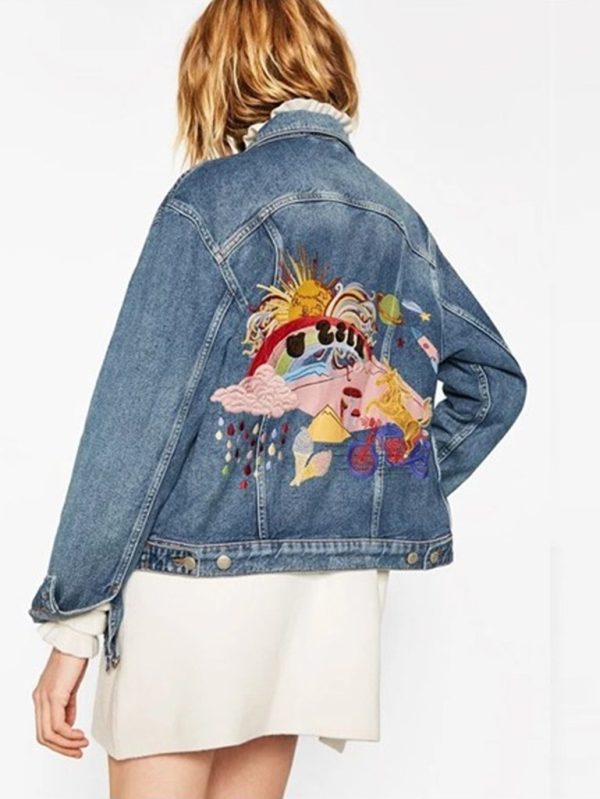 Pamuk kumaştan üretilmiş, rahat ve geniş kesime sahip, önden metal düğme kapamalı, yan kısımlarda iki cep, sırt kısmında nakış detaylı kısa kot ceket. Mavi rengi mevcuttur. S,M ve L beden seçenekleri ile sipariş verebilirsiniz.