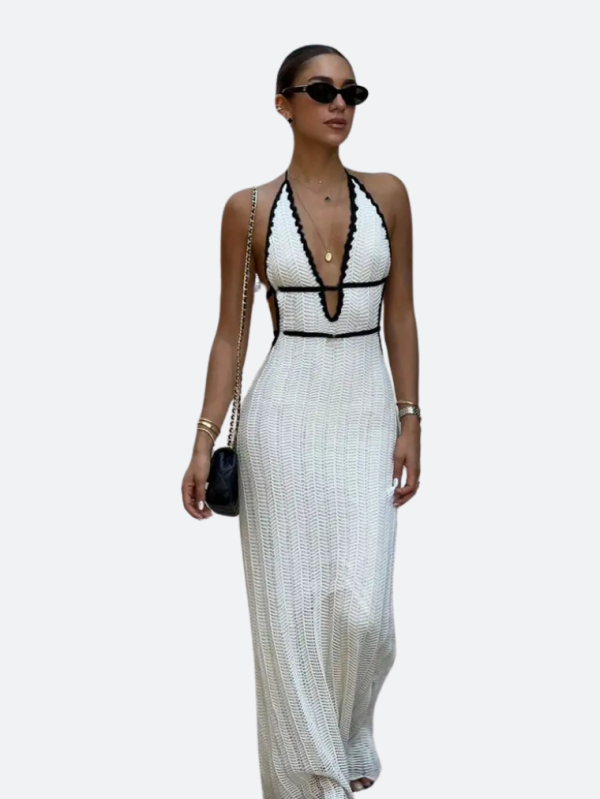 Pamuk Polyester karışımı örme ipten üretilmiş, Şık örgü dokusu ve cesur sırt dekoltesiyle bu beyaz elbise, yaz davetlerinden plaj partilerine kadar her ortamda zarif bir duruş sergiler. Hafif yapısı ile gün boyu konfor sunar.. Beyaz rengi mevcuttur. XS-S-M-L beden olarak sipariş verebilirsiniz.