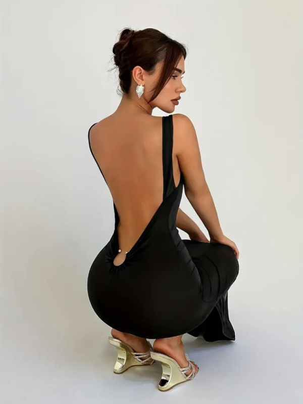 Derin Sırt Dekolteli Uzun Siyah Elbise SK56644