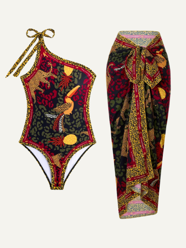Çiçek Aksesuarlı Desenli Etekli Mayo Takımı SK56614