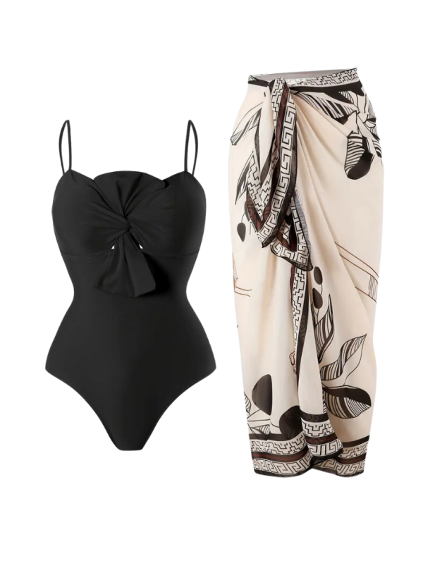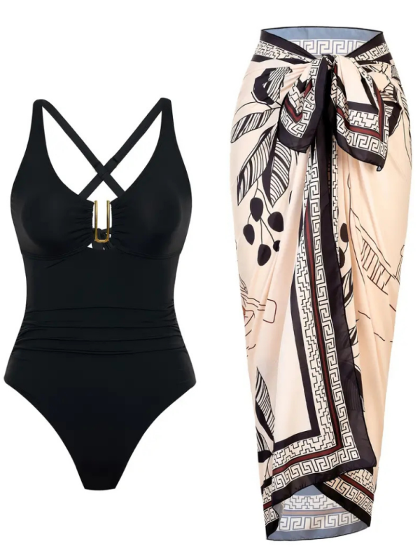 Siyah Desenli Etekli Metal Aksesuarlı Bikini Takımı SK56525