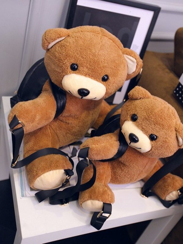 Yüksek kalite suni deriden üretilmiştir. Sırt çantasının üzerinde pelüş ayı kullanılmıştır. Sırt çantası olarak kullanıma uygundur. Çantanın boyutları 45x25 ve 33x18 cm'dir. İki adet boy seçeneği vardır. Siyah renk seçeneği ile sipariş verebilirsiniz.