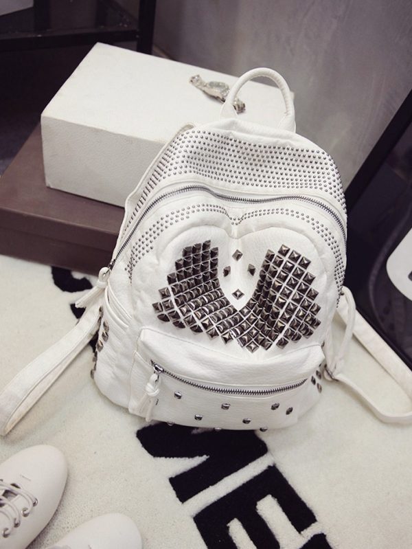 Yüksek kalite suni yumuşak kabartma deriden üretilmiştir. 30x28x15 cm ebatındadır. Metal fermuarlıdır. Zımba ve perçinlerle süslenmiştir. Siyah, Beyaz ve Gri renk seçenekleri ile sipariş verebilirsiniz.