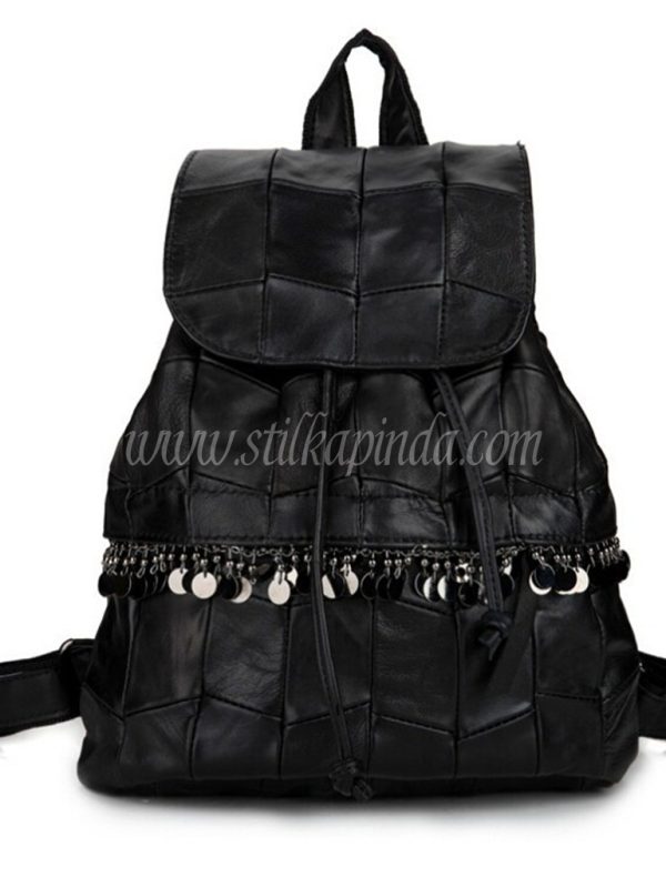 Gerçek deriden üretilmiştir. 27x33 cm boyutundadır. Sırt çantası olarak kullanıma uygundur. Üzerinde sallantılı metal pul boncuk detayları kullanılmıştır. Siyah renk olarak ile sipariş verebilirsiniz.
