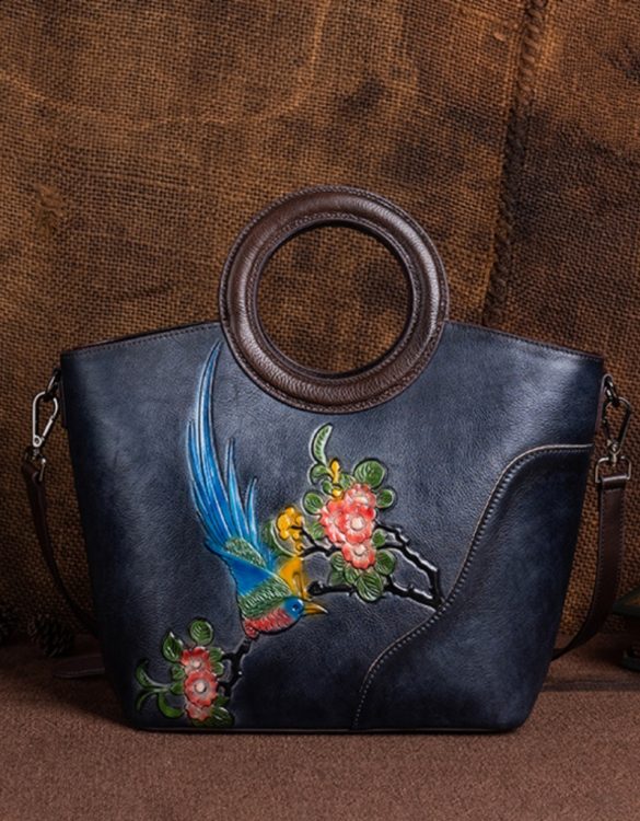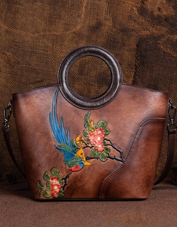 Vintage Hakiki Kabartma Deri Kol Çantası SK53681