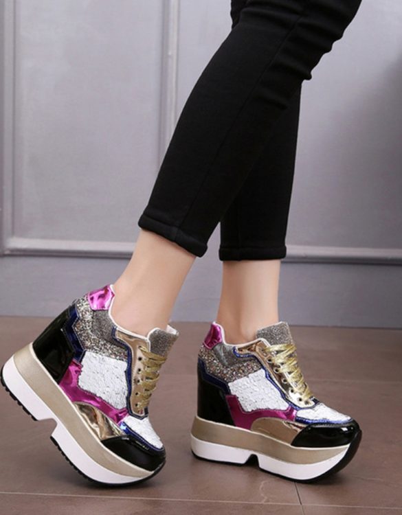 Parlak Yüksek Topuklu Spor Ayakkabı SK52212