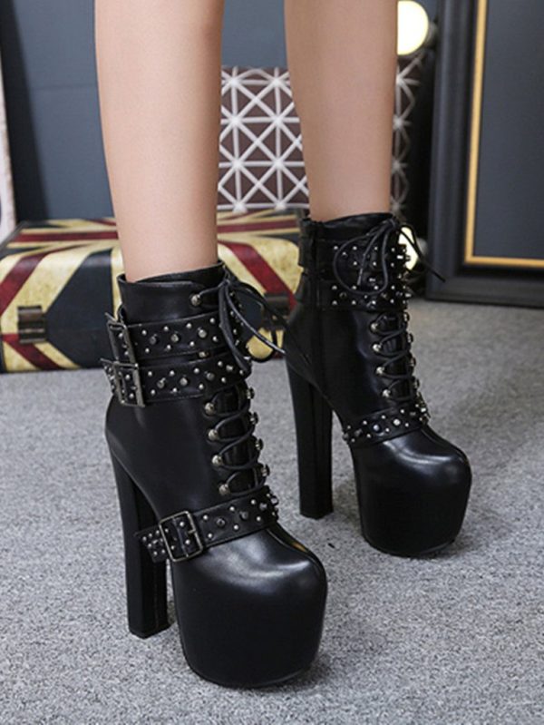 Yüksek kalite suni deriden üretilmiştir. Taban malzemesi kauçuktur. Bot platform yüksek topukludur. Topuk yüksekliği 16 cm'dir. Bot kemer ve zımba detaylara sahiptir. Kapama şekli fermuarlı olarak tasarlanmıştır. Bot'un yüksekliği bilek üzerindedir. Siyah renk seçeneği mevcuttur. 34-40 numara seçenekleri ile sipariş verebilirsiniz.