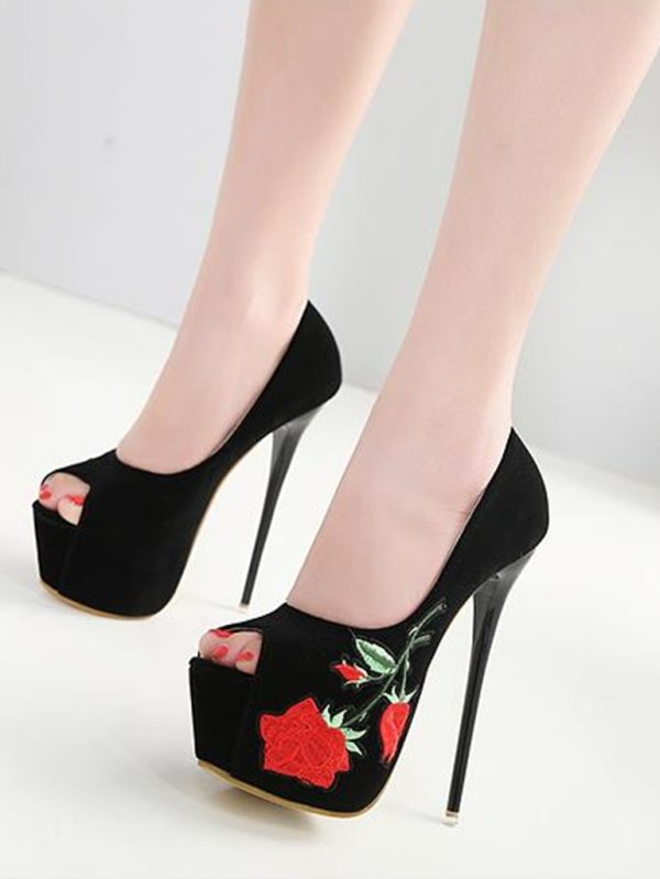 Yüksek kalite suni süet deriden üretilmiştir. Taban malzemesi kauçuktur. Ayakkabı platform topukludur. Topuk yüksekliği 16 cm'dir. Üzerinde nakış desen detayları kullanılmıştır. Siyah renk seçeneği mevcuttur. 34-40 numara seçenekleri ile sipariş verebilirsiniz.
