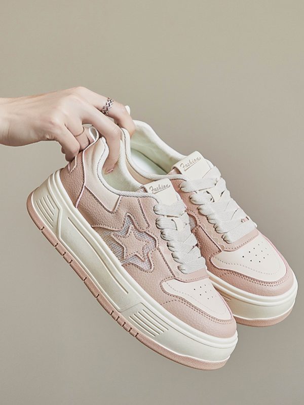 Yüksek kalite suni deriden üretilmiştir. Taban malzemesi kauçuktur. Kalın tabanlıdır. Topuk yüksekliği 5 cm'dir. Spor ayakkabı desen ve aksesuar detaylıdır. Ayakkabının kapama şekli Bağcıklı olarak tasarlanmıştır. Siyah ve Beyaz rengi bulunmaktadır. 35-40 numara seçenekleri arasında sipariş verebilirsiniz.