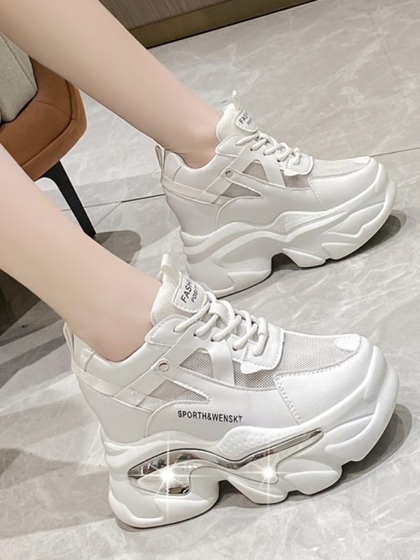 Yüksek kalite suni deriden üretilmiştir. Taban malzemesi kauçuktur. Kalın yüksek tabanlıdır. Topuk yüksekliği 8 cm'dir. Spor ayakkabı gizli topuk ve payet detaylıdır. Ayakkabının kapama şekli Bağcıklı olarak tasarlanmıştır. Beyaz ve Siyah rengi bulunmaktadır. 35-40 numara seçenekleri arasında sipariş verebilirsiniz.