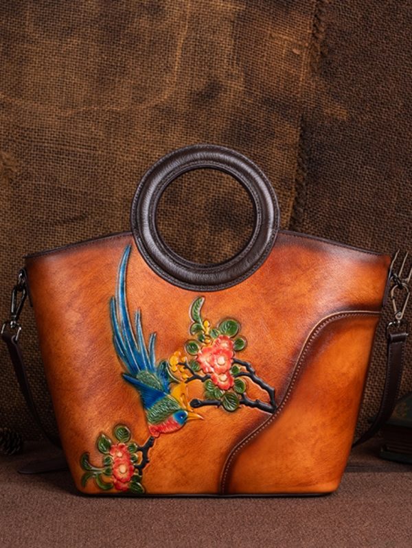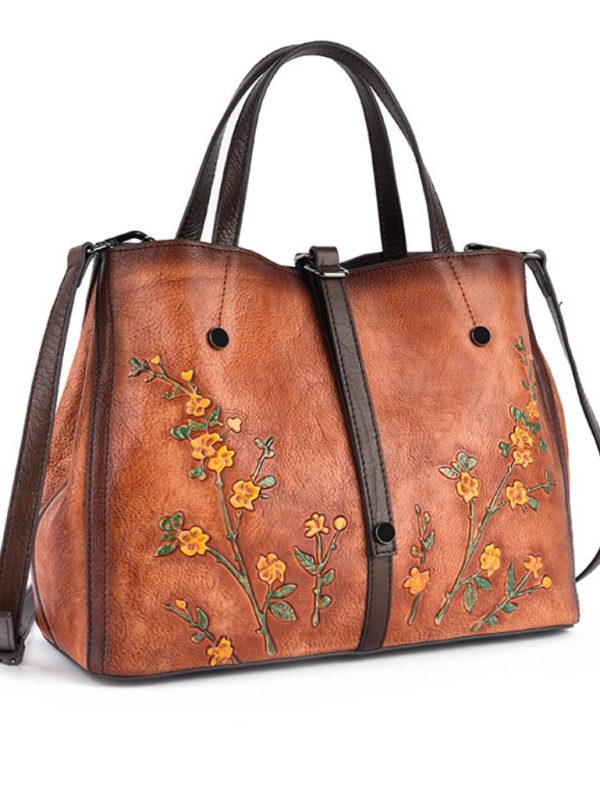 Kabartma Çiçek İşleme Gerçek Deri Çanta