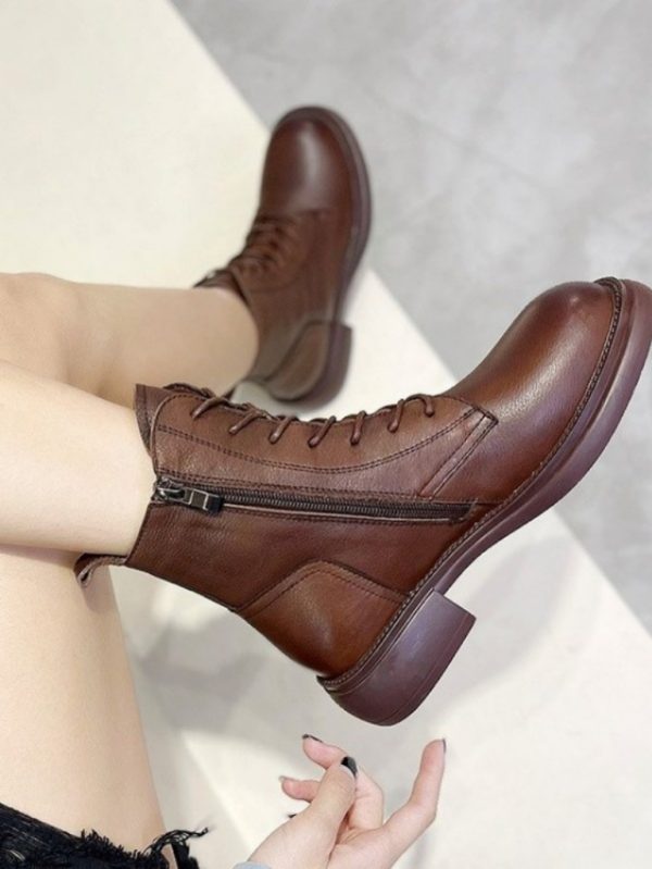 Hakiki Deri Bağcıklı Kısa Kadın Bot