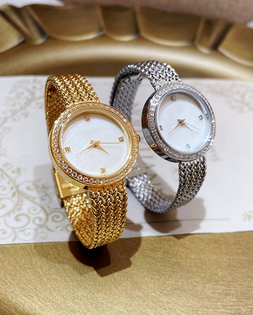 Available in gold and silver, this zircon stone watch complements minimalist outfits, elegant styling, and modern fashion looks.