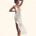 Pamuk Polyester karışımı örme ipten üretilmiş, yaz aylarında bikini ve mayolarınızın üzerine rahatlıkla giyebileceğiniz, ince askılı örgü uzun plaj elbisesi. Beyaz rengi mevcuttur. S-M-L beden olarak sipariş verebilirsiniz.