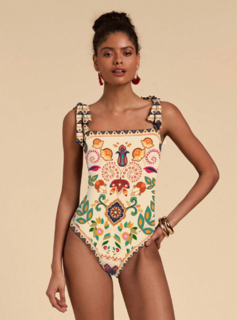 The one piece swimsuit design provides a secure and supportive fit, while the ethnic pattern adds visual movement without affecting comfort. This ethnic patterned one piece women’s swimsuit is ideal for beach days, pool use, summer vacations, and seaside activities.