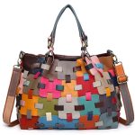 Renkli Büyük Patchwork Desenli El Yapımı Gerçek Deri Çanta SK53886