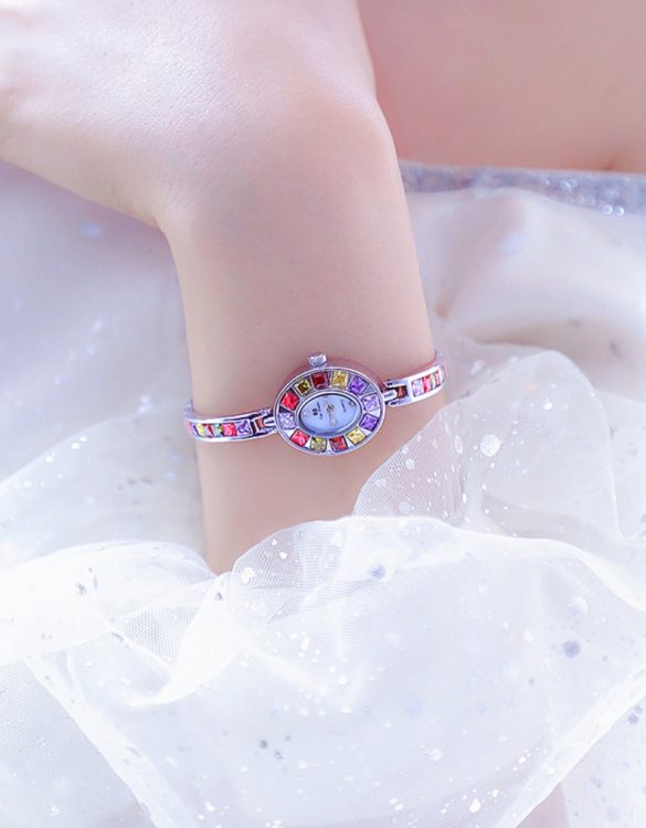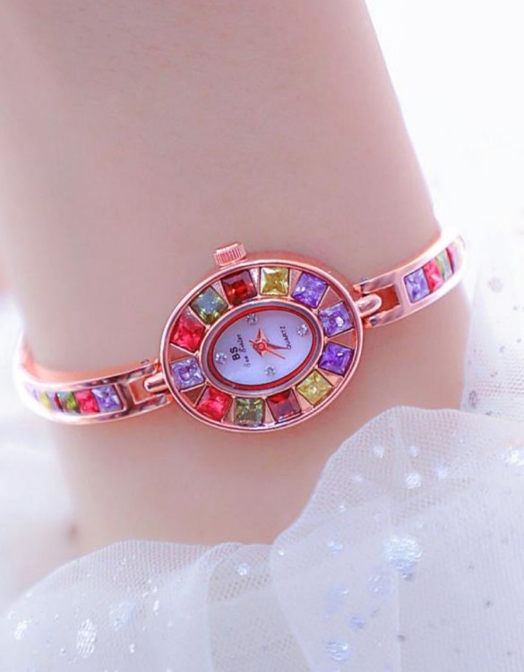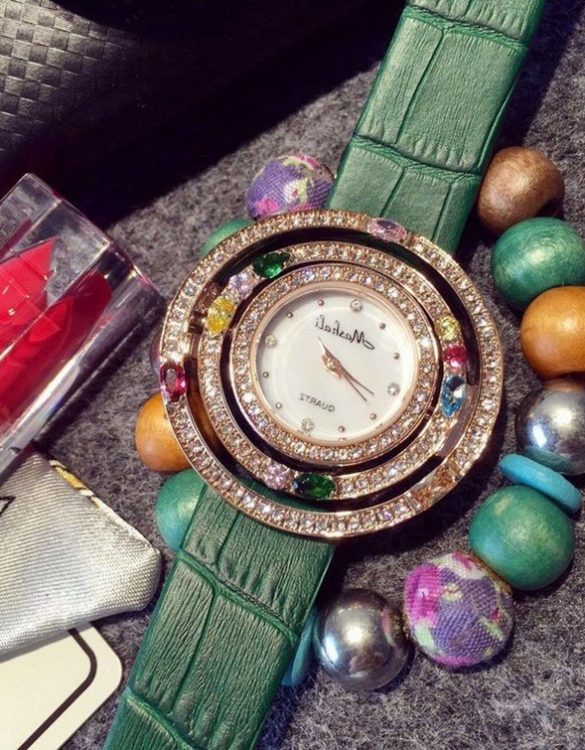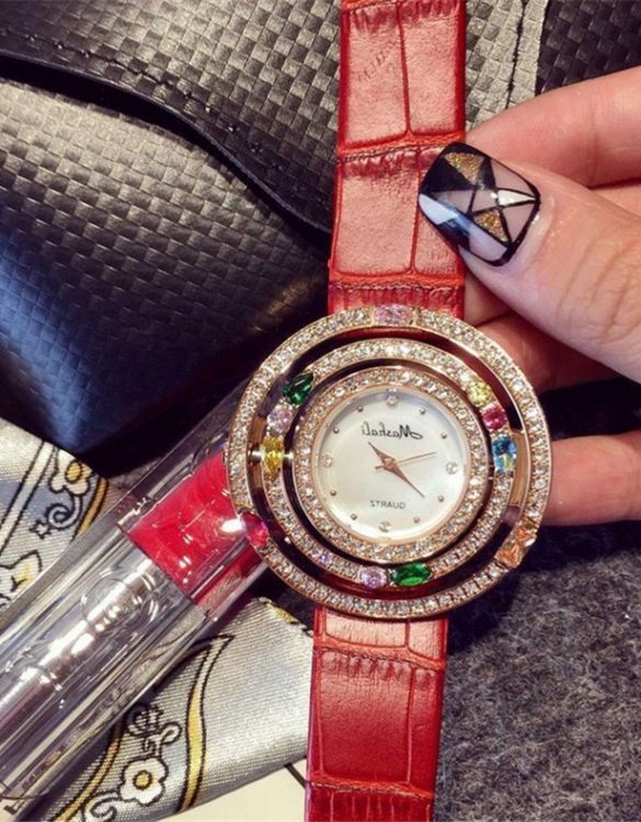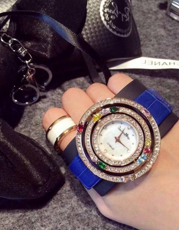 Paslanmaz çelik, hardleks kristal cam ve hakiki deri kayıştan üretilmiştir. Saat çevresi, yüksek kalite suni kristal büyük taşlarla süslenmiştir. Su geçirmezdir. Kadran çapı 3.5 cm, kordon uzunluğu 21 cm'dir. Siyah, Beyaz, Mavi, Kırmızı ve Pudra renk seçenekleri ile sipariş verebilirsiniz.