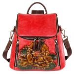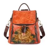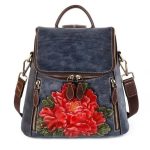 Çiçek Desenli Kabartma Gerçek Deri Sırt Çantası