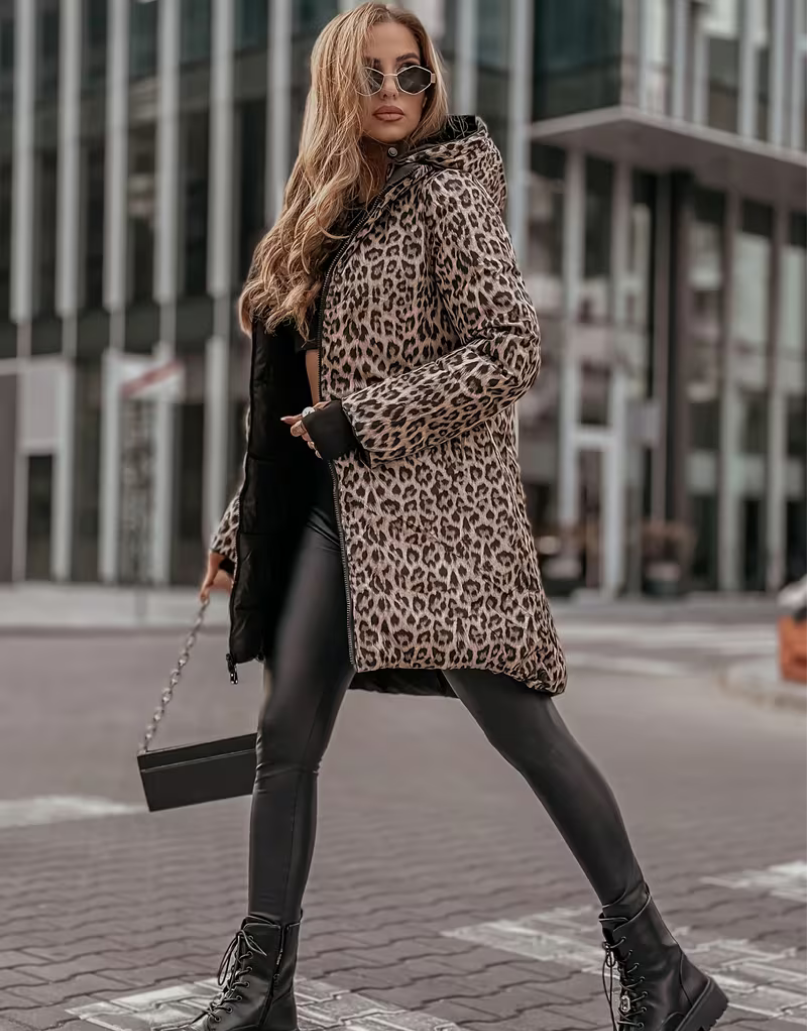 Şıklık ve fonksiyonelliği bir arada sunan Çift Taraflı Leopar Şişme Mont, kış sezonunun en dikkat çekici parçalarından biri!