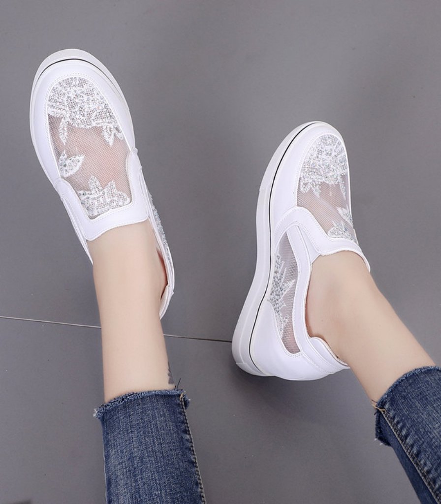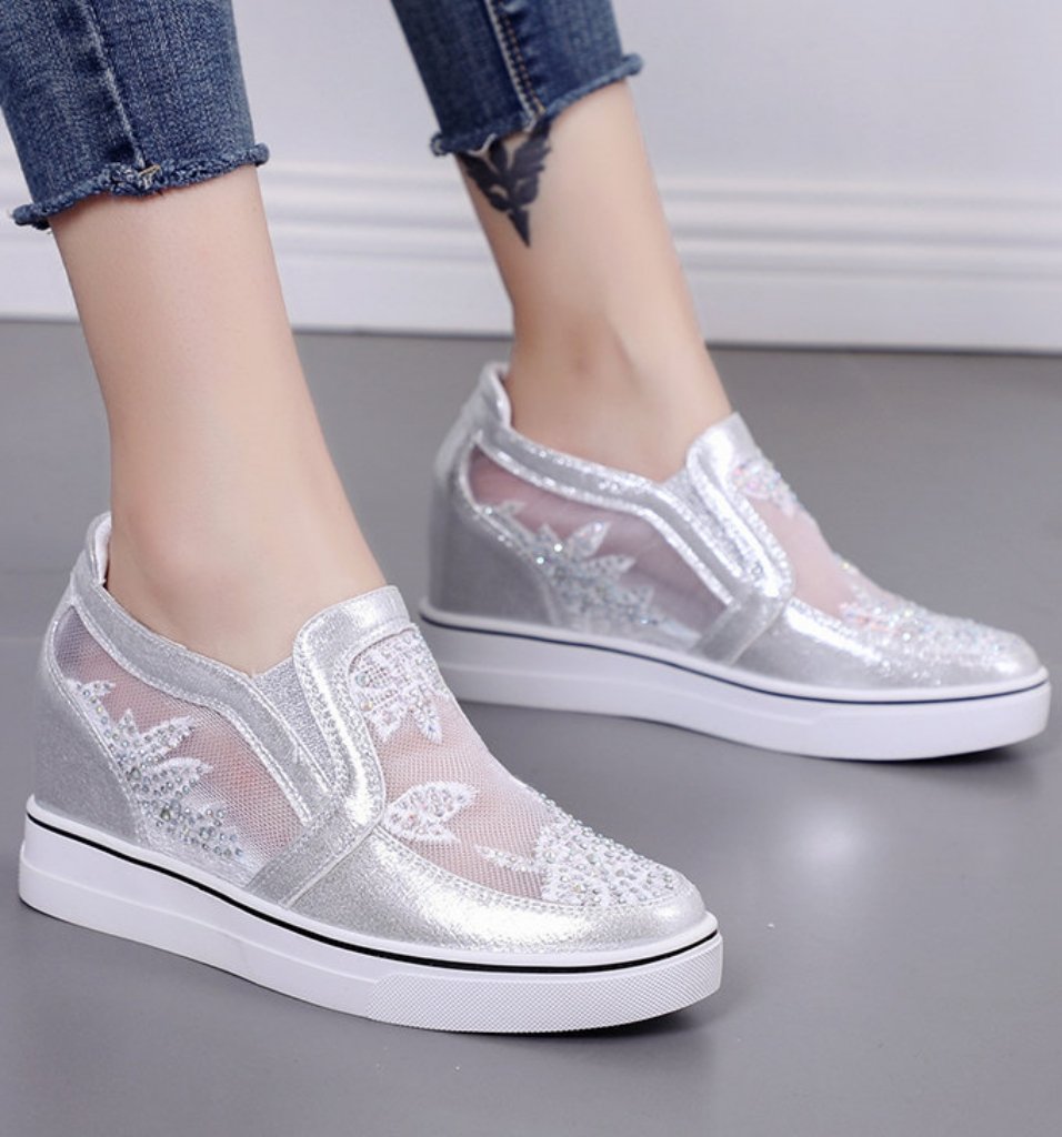 The SK53110 hidden wedge sneakers combine romantic detail, structured comfort, and concealed height for women seeking refined statement footwear.