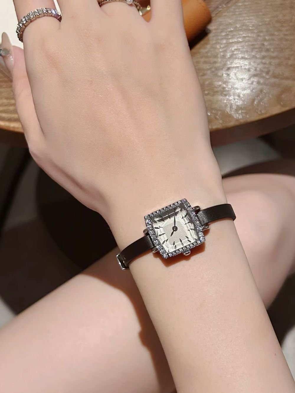 Leather Strap Diamond Stone Elegance Watch for Women