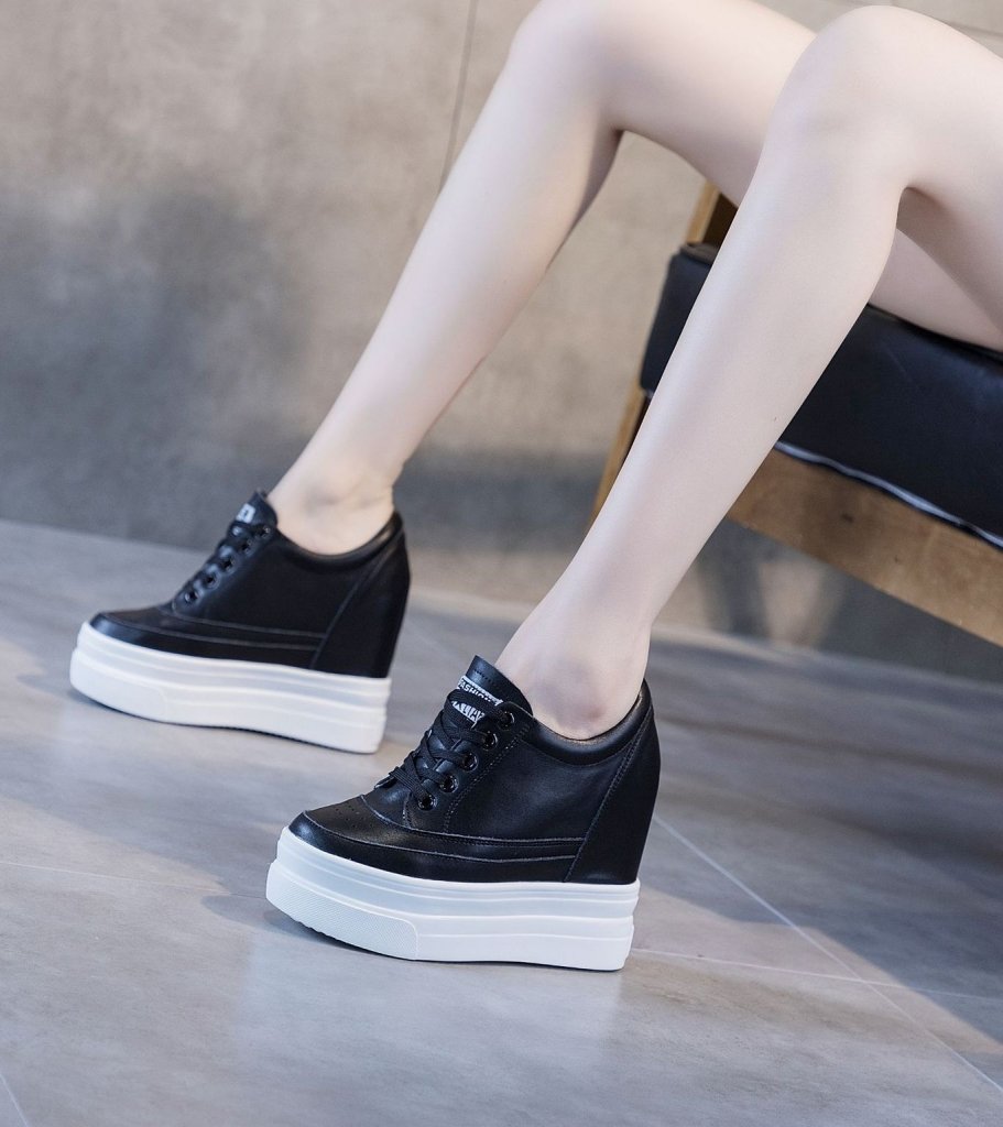 The SK52161 genuine leather hidden wedge sneakers combine extreme concealed height, premium craftsmanship, and structured comfort for women seeking confident elevation.