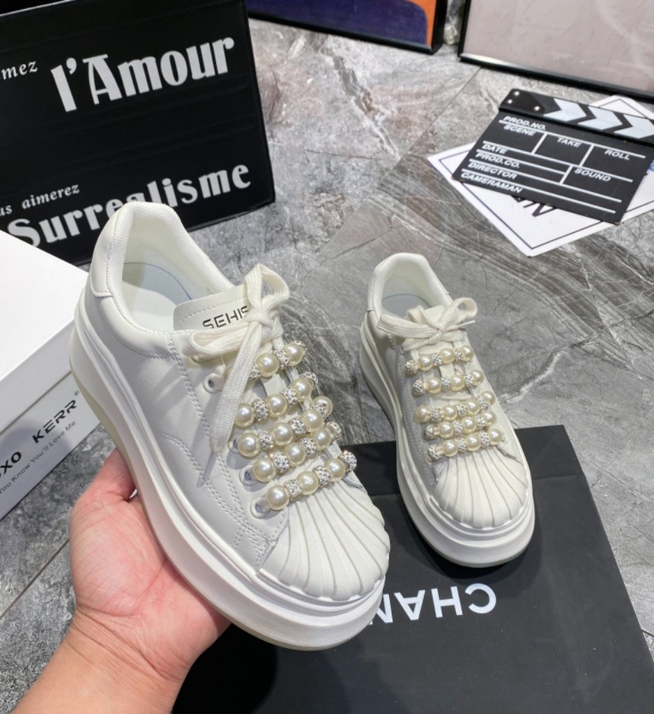 Be the first to review “Pearl Detail Genuine Leather Platform Sneakers SK53225”