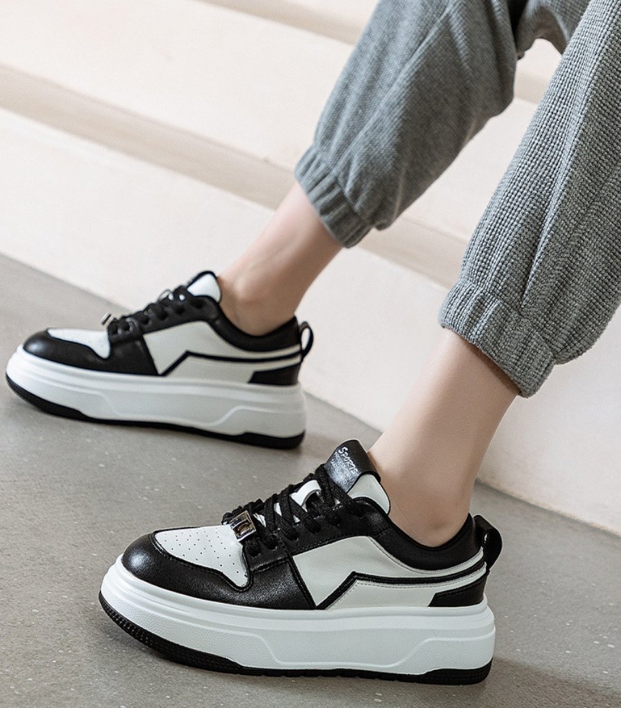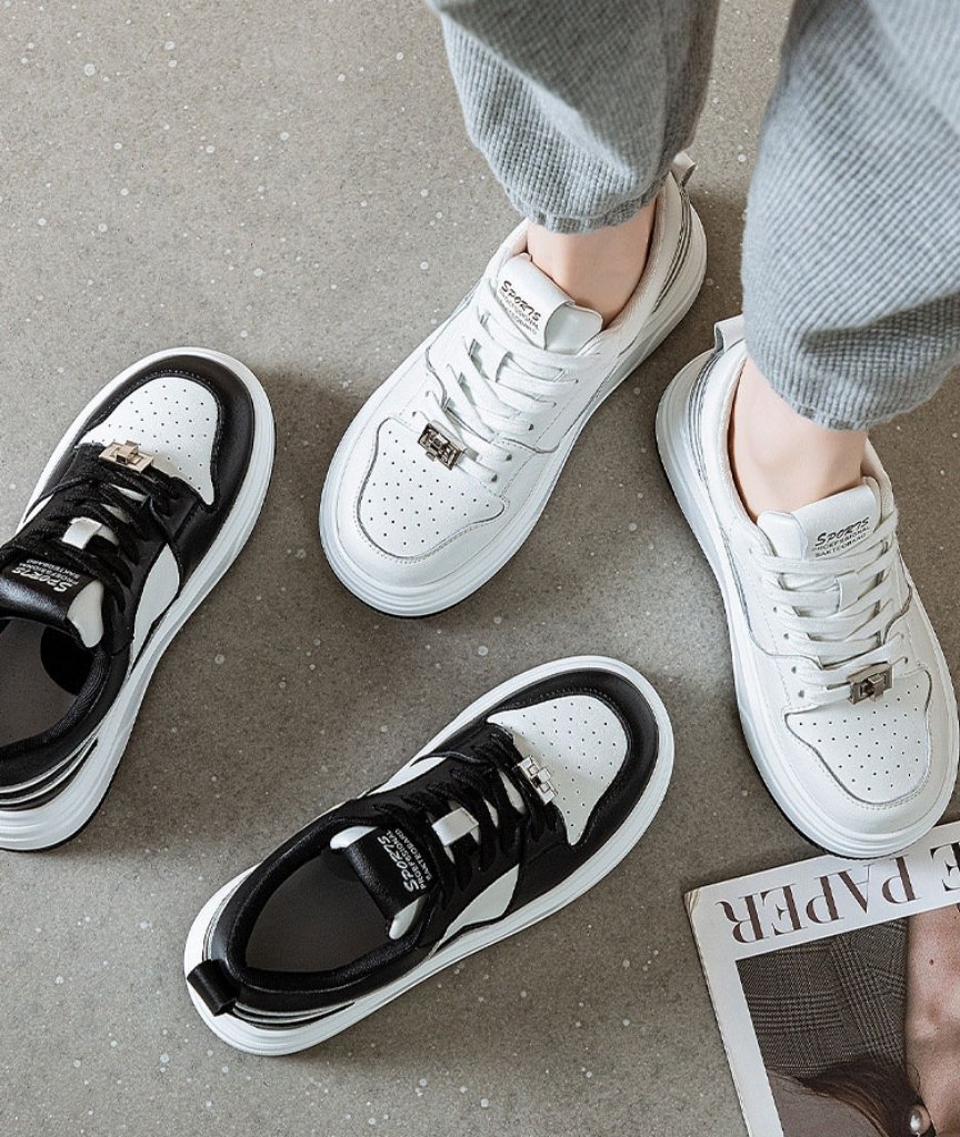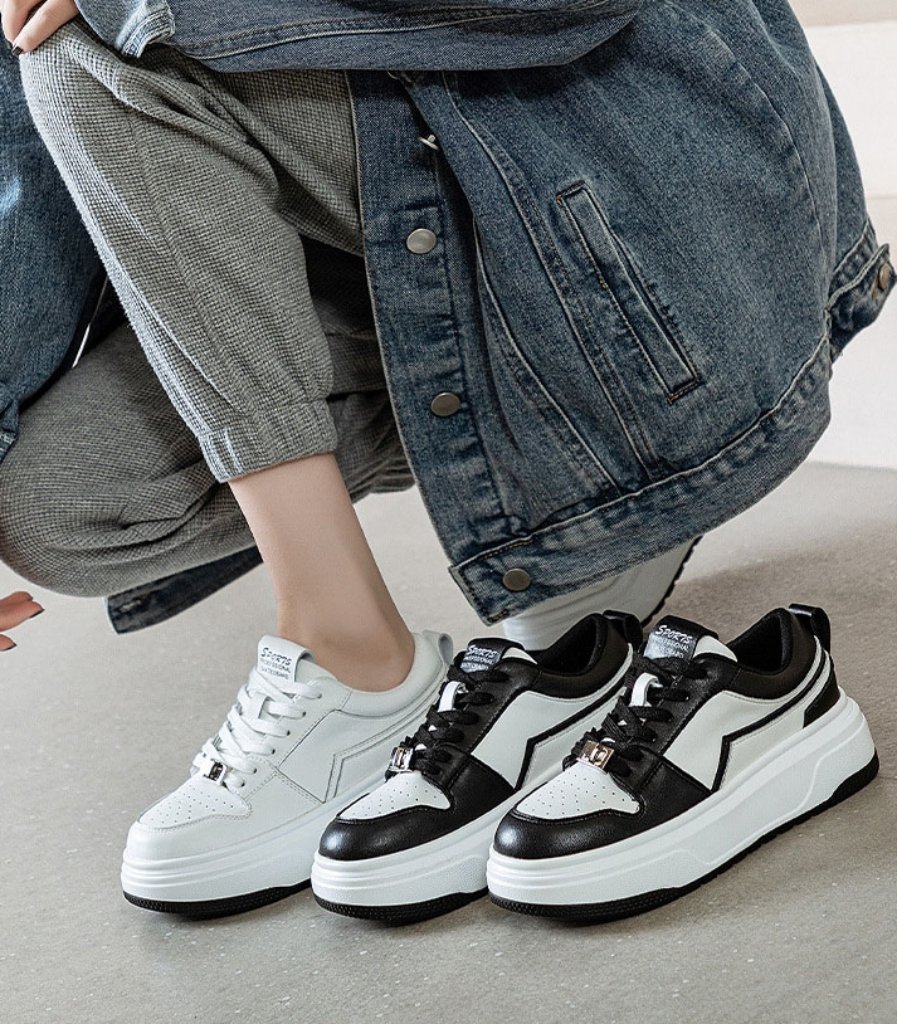 Available in black and white and offered in EU sizes 35–40, these women’s leather platform sneakers are ideal for daily wear, travel, and modern casual styling.