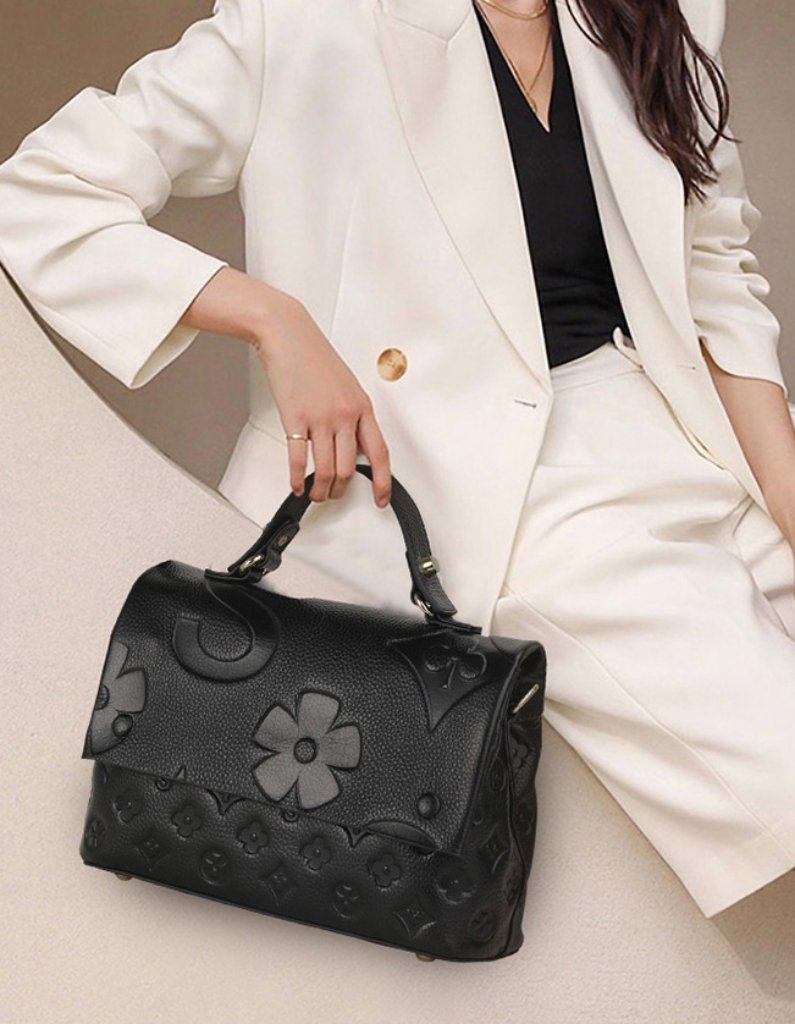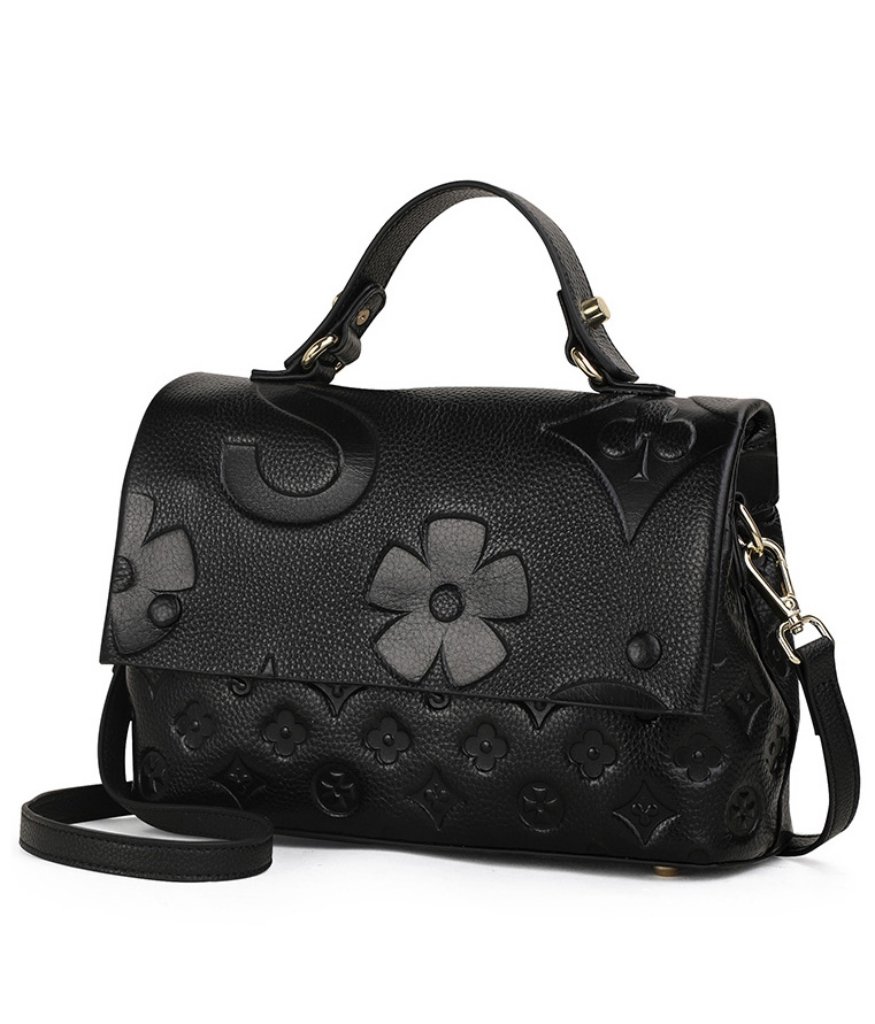 Crafted from high-quality genuine leather, this handbag offers durability and a smooth, premium finish. The embossed detailing adds depth and character while maintaining a clean, structured silhouette suitable for everyday and elevated styling.